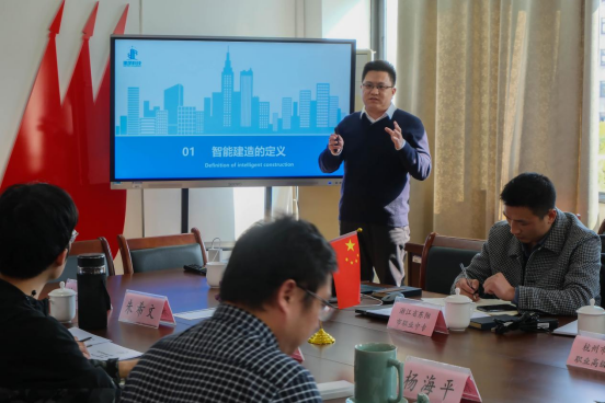 教务处楼骏处长代表学校致辞欢迎,并提到在当前国家职业教育改革背景下,召开此次研讨会对深入推进中高职一体化人才培养具有十分重要的意义。郑夏翊总经理作了《智能建造行业企业开展情况研究》的主旨报告,他用大量的调研数据,以行业、企业的角度对智能建造人才培养进行了剖析解读,认为建筑未来工厂的从业人员,不仅需要掌握建筑专业知识,还要具备智能化系统构建和智能化设备操作的能力。陆小珊教授从学校的专业建设角度与大家一起分享交流了《从装配式建筑到智能建造专业建设的建设思路》,他介绍了智能建造专业建设的政策依据和实施路径,围绕技能成才的中心设计了一体化的实训建设方案。杨海平院长作了《建筑类中高职一体化建设思考》为题的主旨报告,他分析了这几年建工学院与合作学校在中高职一体化的培养过程中的现状和问题,并提出了一下步的改进举措。