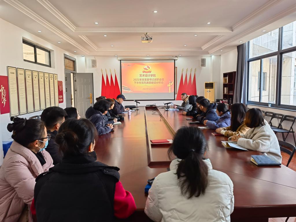 为深入推进党史学习教育,进一步落实全面从严治党,加强党风廉政建设工作,12月31日艺术设计学院党总支在B506会议室召开党支部书记述职大会暨学院下半年党风廉政建设分析会。党总支书记张文炜、全体党总支委员、支部书记、专业部主任及党员代表参加了本次会议。