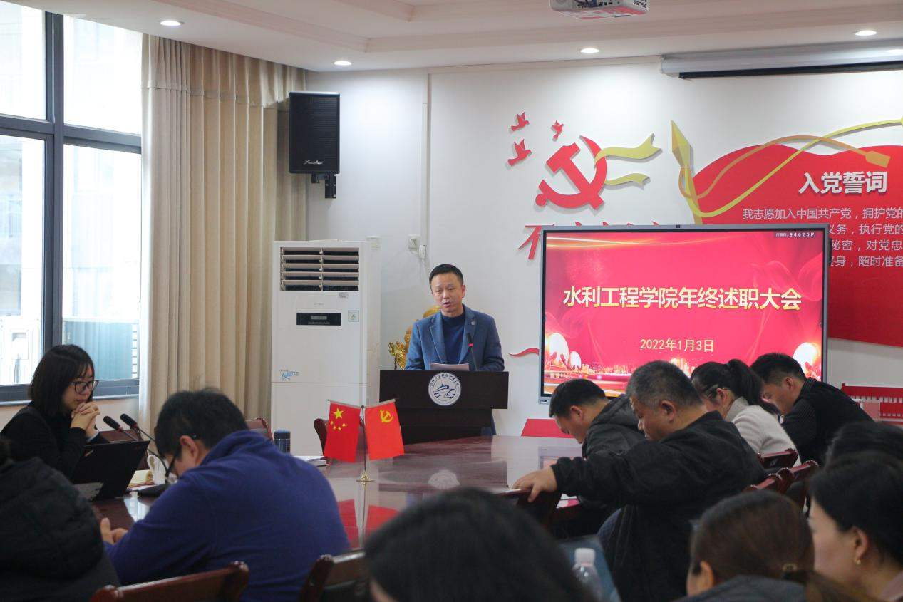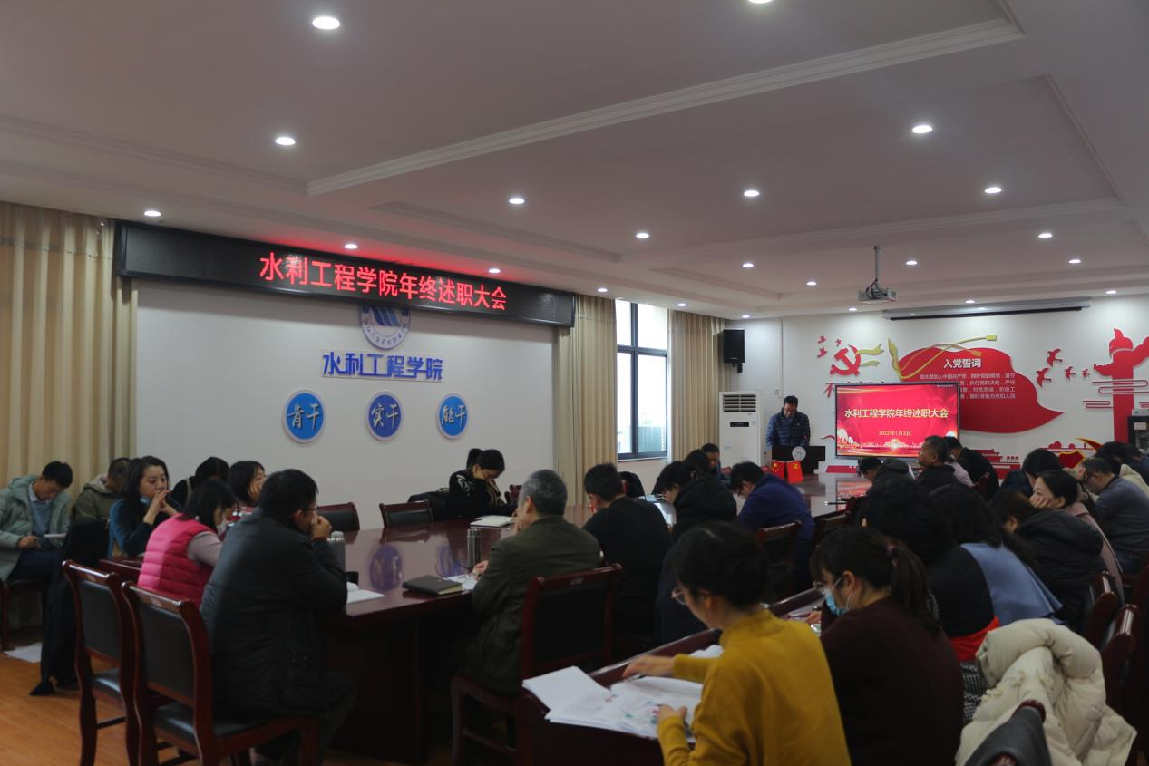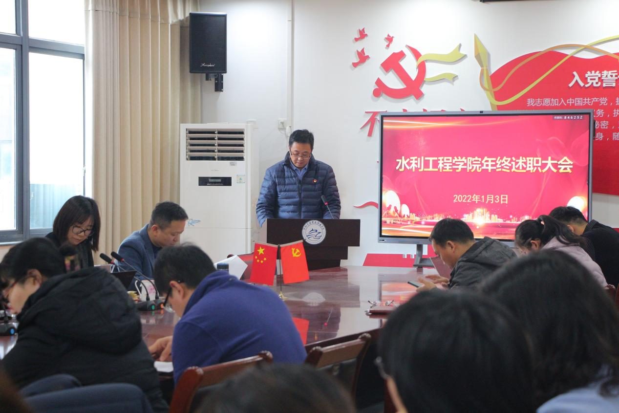 1月3日,水利学院在党员之家召开2021年度年终述职大会,水利学院领导班子、全体教职工参加大会。领导班子成员、专业部主任(专业方向负责人)、行政人员分别对一年工作进行总结述职。