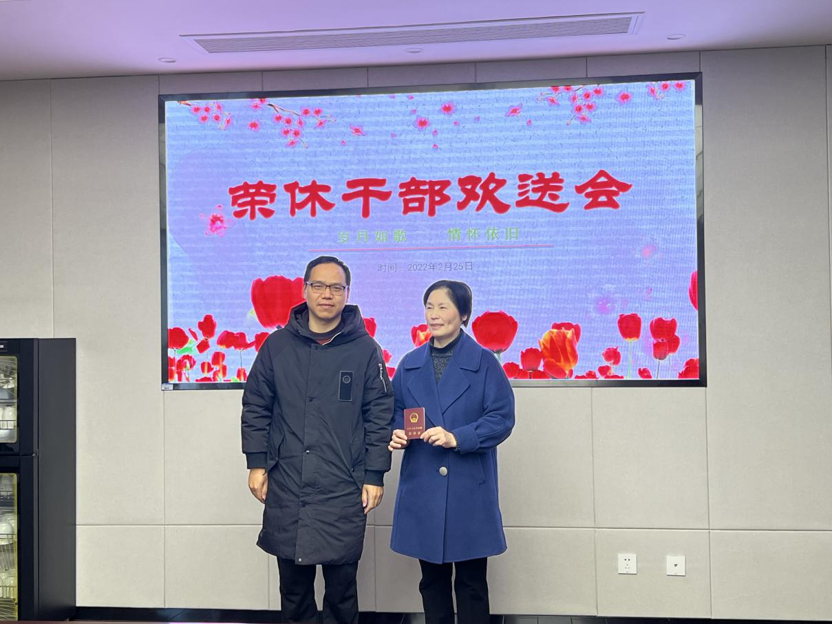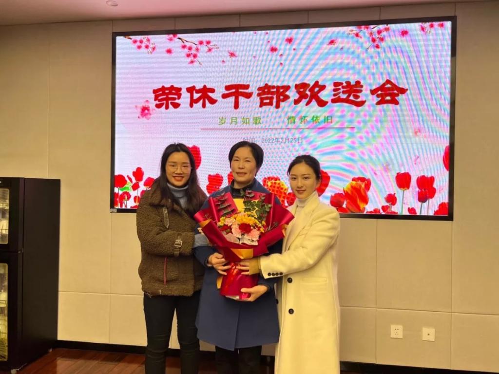 最后,陈齐安老师向姚建芬同志送上鲜花,与会同志一起合影留念,欢送会在和谐、欢乐的气氛中结束,为她奋斗三十余年的工作生涯画上了圆满的句号,也为她的人生新阶段拉开了美好序幕。