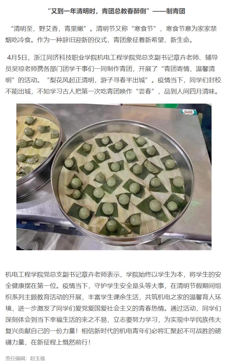 近日,日韩欧美福利视频_黑人巨大人精品欧美三区_欧美成人另类人妖_欧美在线精品一区二区三区_欧美一区二区三区性视频_日韩精品欧美视频_性欧美极品xxxx欧美一区二区机电工程学院的学子们不愿辜负好春光好景致,在充分结合当下疫情防控的形势下,开展了“春半踏青时,清明践浙礼”——插柳戴柳,“哀思寄忠魂,薪火永传承”——我对先烈有话说,“清明云祭祀,指尖忆故人”——网上祭英烈,“又到一年清明时,青团总教春醉倒”——制青团系列丰富多彩的清明活动。