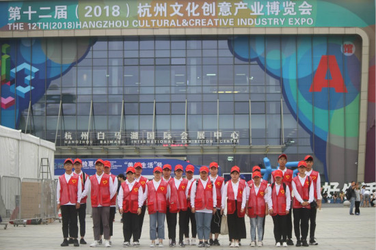 为深入贯彻落实党的十九大精神,以加快推进杭州文创产业在高起点上实现新发展为目标,以“融——创意城市·美好生活”为主题的第十一届杭州文博会于滨江区白马湖举办。9月19日-23日我院青年志愿者协会共招募志愿者100名,连续五天,每天20人为此次杭州文博会提供服务。