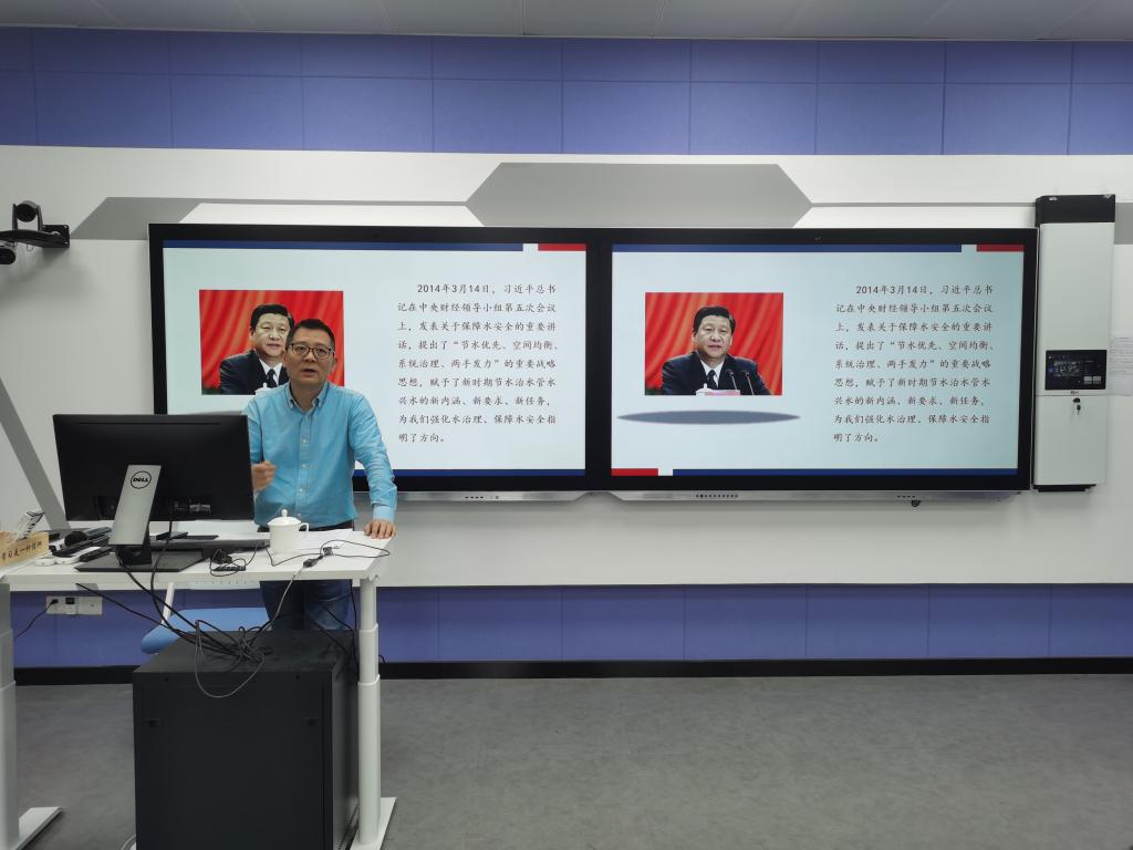 吴副书记以浙江水利发展史为切入点,围绕“新时代治水思路”“新时代水利精神”和“新时代水利人的新要求”三个方面,结合自身经历,带领同学们回顾学习了“忠诚、干净、担当,科学、求实、创新”的新时代水利精神内涵,用一个个感人的故事阐述了一代代水利人的初心、使命和担当。