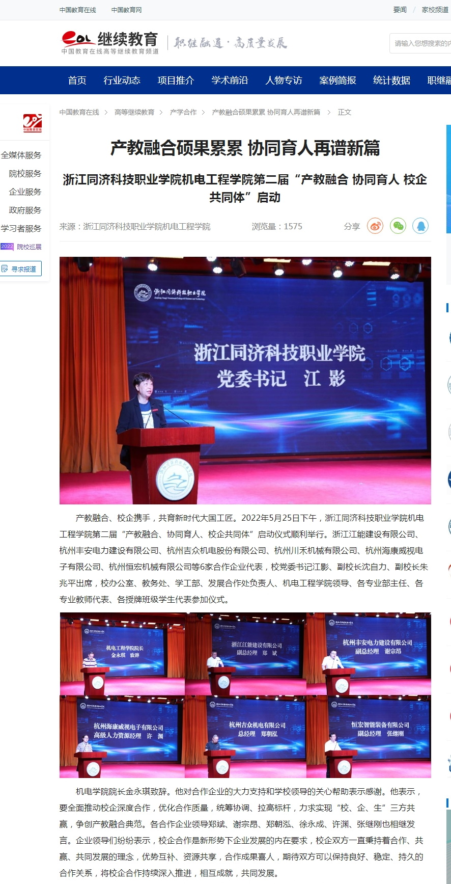 2022年6月2日中国教育在线以《产教融合硕果累累 协同育人再谱新篇 日韩欧美福利视频_黑人巨大人精品欧美三区_欧美成人另类人妖_欧美在线精品一区二区三区_欧美一区二区三区性视频_日韩精品欧美视频_性欧美极品xxxx欧美一区二区机电工程学院第二届“产教融合 协同育人 校企共同体”启动》为题,报道我校机电工程学院校企合作启动仪式。