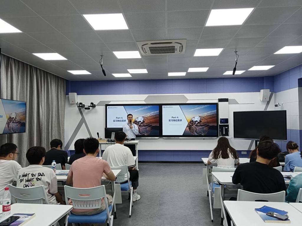 随后宋庆滔总经理为水利工程(中美合作)专业同学进行实习招聘宣讲和现场面试,多位同学投递简历并与宋总一行交流。2019年开始,水利学院与美国圣马丁大学合作办学,设立水利工程(中美合作)专业,本专业的人才培养目标是培养懂水利水电工程建设与管理技术、具有较强的英语应用能力和较高的社会责任感的国际水利建设项目管理人才,人才培养目标与华东院国际公司岗位需求契合。人才培养过程中,一方面引进美国先进的教学理念,另一方面全过程英语加强教学,2022届毕业生中33人参加专升本考试,最终28人上线将继续攻读本科,英语加强使得该班本科上线率达85%,位列全校第一。