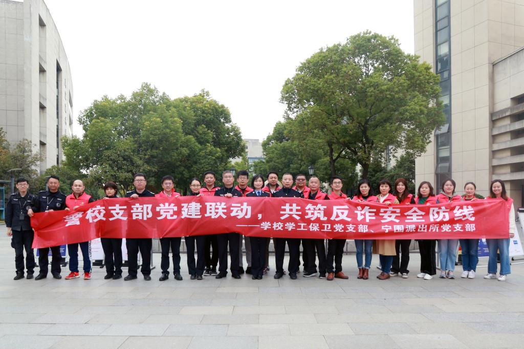 11月5日,为提高学校师生防范电信网络诈骗的警惕性,减少电信诈骗案件的发生,维护校园和谐稳定,学工保卫党支部联合萧山区宁围派出所党支部联合开展“警校支部党建联动,共筑反诈安全防线”主题党日活动,共有20多名支部党员参加。