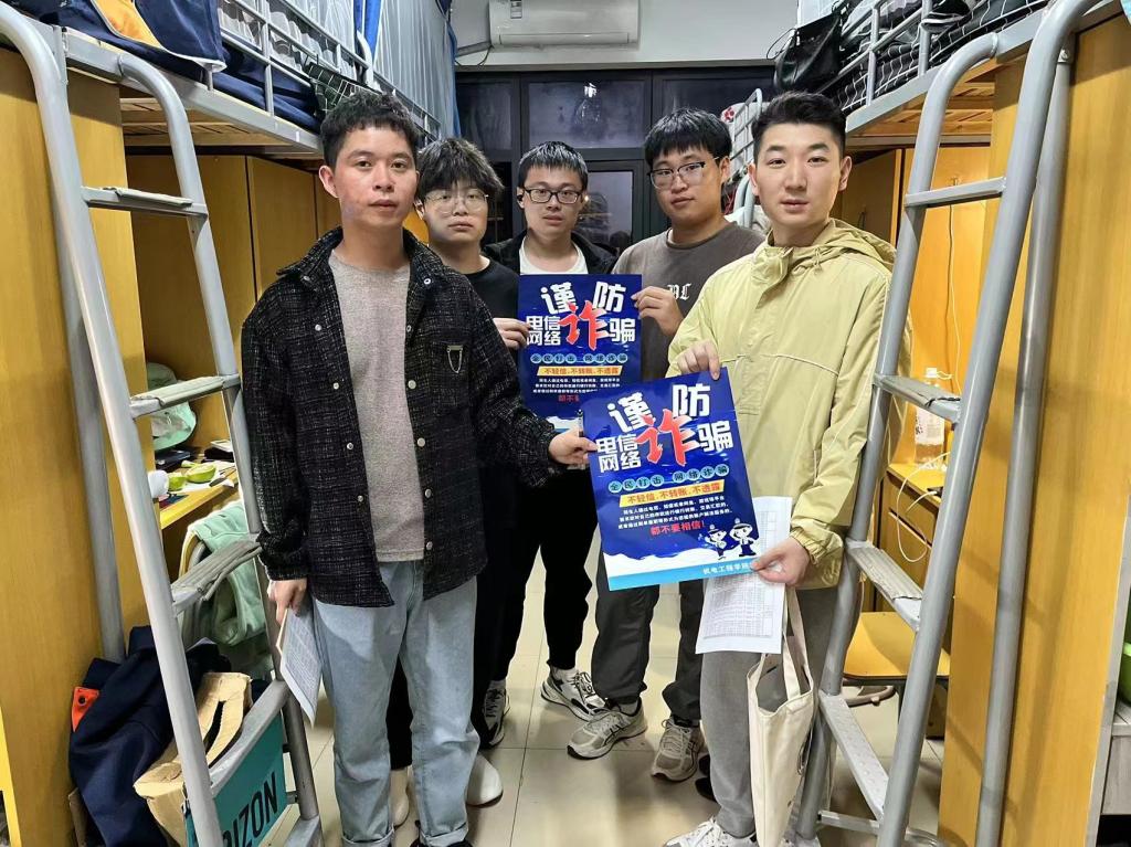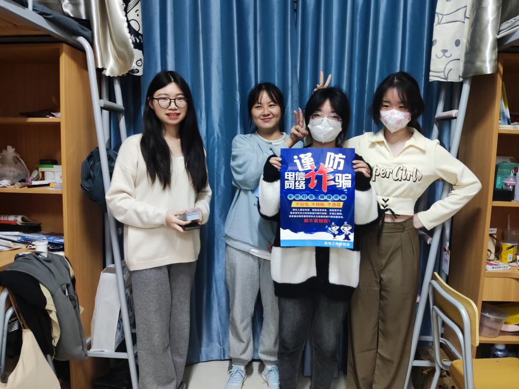 “如果有陌生人给你打电话、发信息,以任何形式要求你汇款转账的,都不要相信。”在寝室里,辅导员们殷殷嘱托,学生们认真听讲。