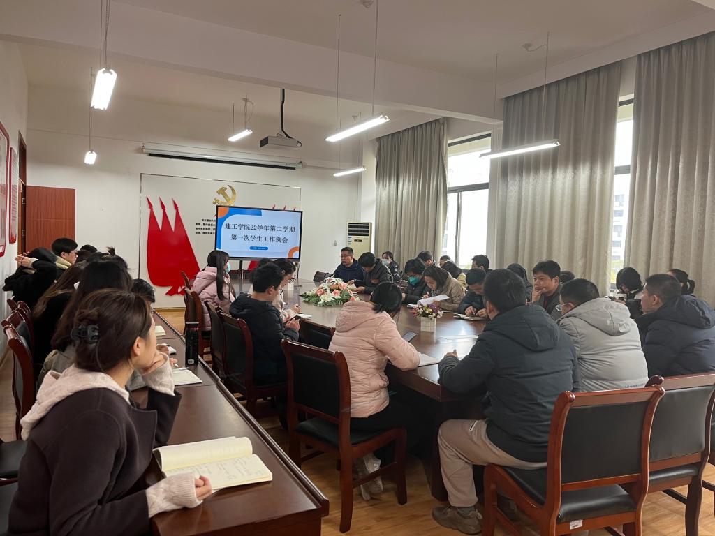 2月17日上午,建工学院在钱江楼313会议室召开2023年新学期第一次学生工作例会,部署新学期开学期间的各项任务。学院党总支书记蒋晓冬、党总支副书记石彦军、全体辅导员、教学秘书及班主任参加。会议由学院党总支书记蒋晓冬主持。