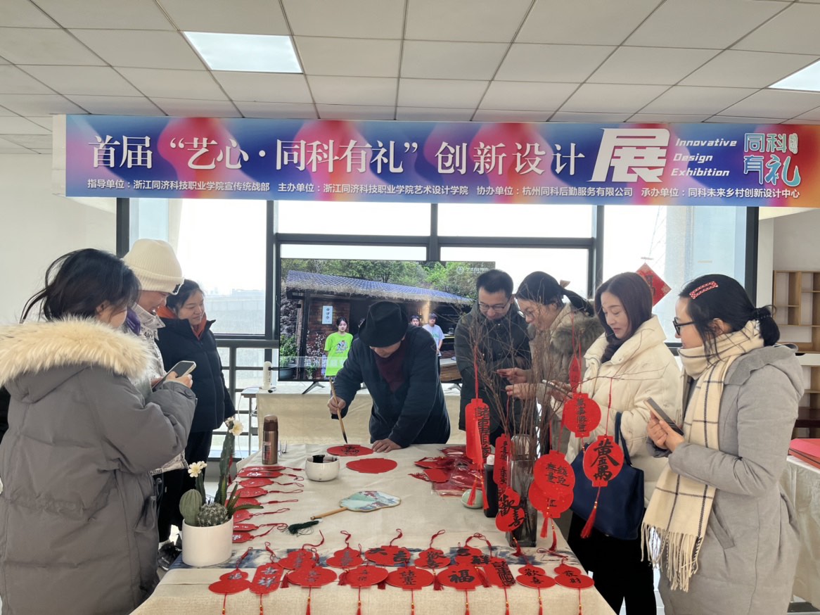 2023开年之际,在学院宣传统战部指导下,艺术设计学院协同杭州同科后勤服务有限公司围绕校园办公用品、“同科有礼”品牌文创产品、未来乡村创新设计中心优秀社会服务案例和乡村振兴获奖成果等内容,举办了集聚产学研一体的创新设计成果的展览。