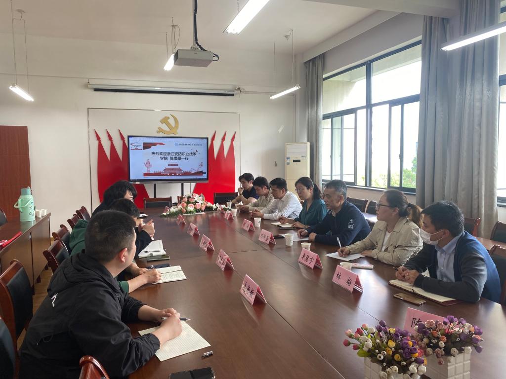 会上,蒋晓冬书记向前来参观学习的教师介绍了学校的发展历史、院系设置,着重分享了学院党建工作与创新创业大赛的经验。陈乾浩副院长介绍了建工学院建设浙江省高水平专业群的经验,详细讲述了建工学院的专业特色、师资力量、课程设置、学程制改革以及生源特点。陈惜墨院长介绍了浙江安防职业技术学院智能建筑学院的基本情况和办学特色。双方就人才培养方案、技能大赛、实训室建设、学生实习管理等问题进行了深度的交流和探讨。陈乾浩副院长还带领陈惜墨院长一行前往土木实训基地参观,了解学校实训室建设情况。