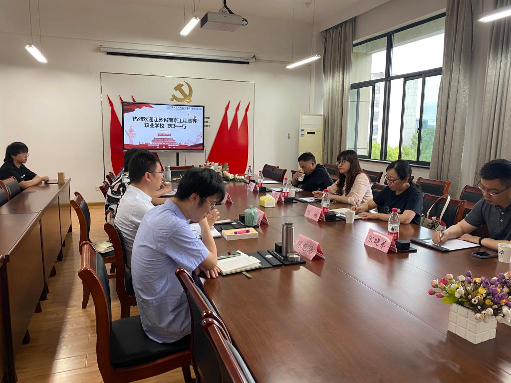 6月6日,江苏省南京工程高等职业学校教务处处长刘琳一行4人来建筑工程学院交流学习。建工学院党总支书记、副院长蒋晓冬,党总支副书记、院长杨海平,副院长陈乾浩,建筑工程技术专业部教师江云帆博士参与交流会。