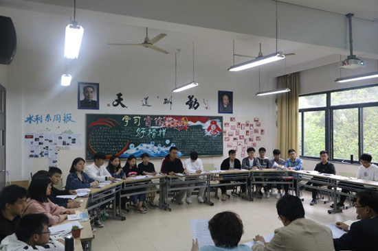 4月4日下午1点,水利系大禹2017班在水利水电楼A204召开三峡实习动员大会,参加动员大会的有学院院长、大禹2017德育导师梁国钱,教务处副处长楼骏,水利系副主任刘进宝,实习带队教师彭晓兰,水利系辅导员韩丹丹,大禹2017班班主任张晨辰及大禹2017班全员。
