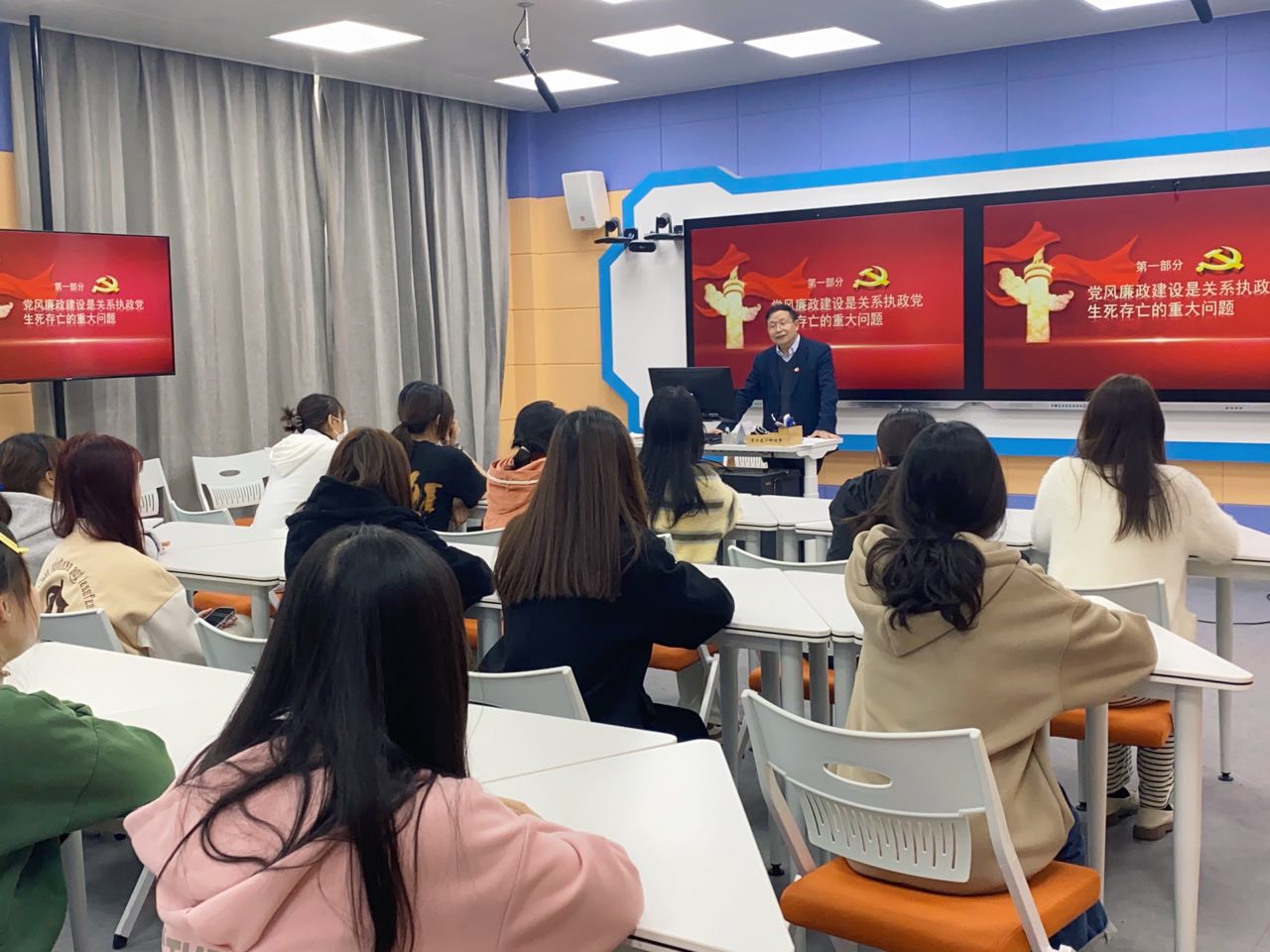 随后,中央储备粮杭州直属库有限公司党支部书记杨永锋同志以《全面贯彻落实党的二十大精神深入推进党风廉政建设和反腐败斗争》为题为经信学院学子开展了廉洁教育专题党课。杨书记强调,要充分认识反腐斗争的严峻性、复杂性、艰巨性和长期性,认真贯彻党的二十大精神,深化标本兼治、系统治理,一体推进不敢腐、不能腐、不想腐,牢牢构筑反腐倡廉的坚实防线。青年是国家的未来,民族的希望。作为大学生,要树立廉洁的理念,踏实做人,廉洁做事,提高自身的法律意识,严格遵守国家法律法规和学校的各项规章制度,为全面建设社会主义现代化国家积蓄青春力量。