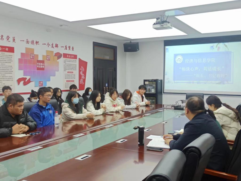 为充分了解学生日常学习生活中遇到的问题与困难,为学院广大同学办实事、办好事,经济与信息学院于12月6日下午在B306会议室召开“畅谈心声,共话成长”系列活动第四期——“院长、书记有约”座谈会。经信学院院长景秀眉参加,会议由学院党总支负责人王志远主持。