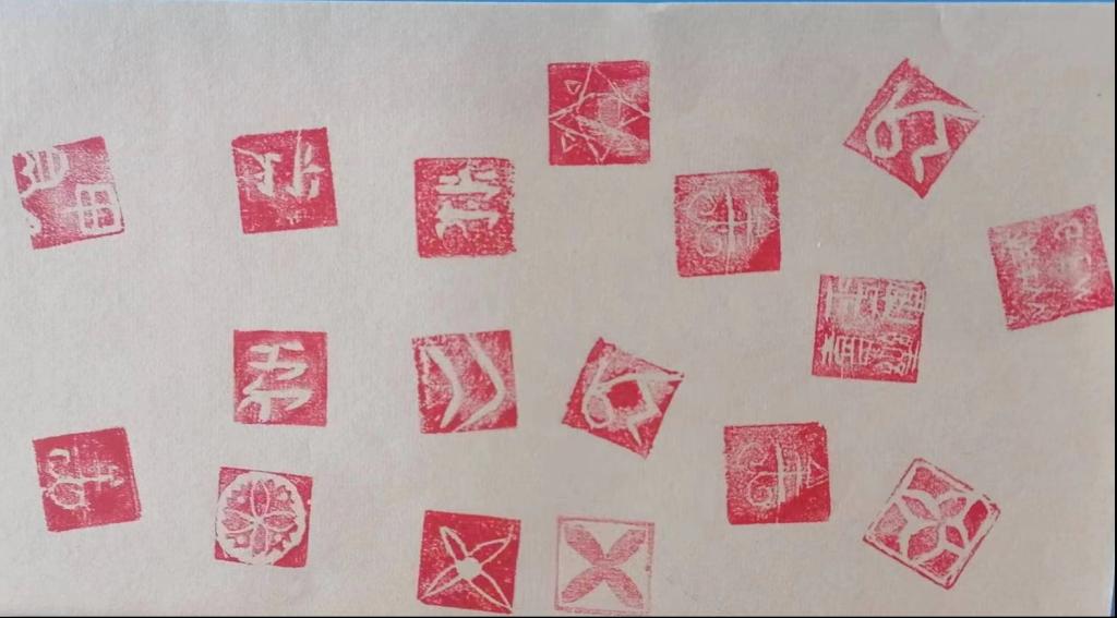 活动开始,吕微同学向大家展示了本次活动的主题和内容,从民族分布、民族习俗和民族特色等方面介绍了彝族,让同学们进行了一场彝族文化的心灵旅游,使同学们全面感受到彝族文化的独特魅力。随后,她详细讲解了篆刻的方法,并播放了篆刻教学网络视频。同学们积极参加、沉浸投入,拿起篆刀选取喜欢的彝族文字和图案花纹进行认真篆刻,最终出色完成了篆刻作品,满怀期待地将手中的印石印到了展示簿上,形成一个个漂亮的印章并保存留念。
