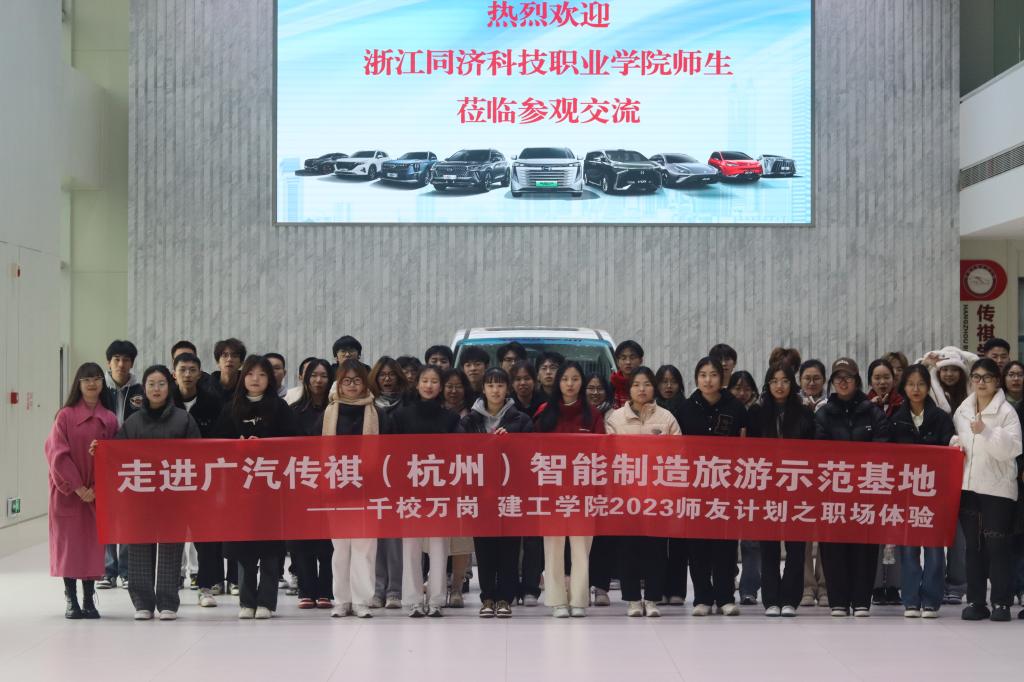 近日,建工学院2023师友计划职场体验活动在广汽传祺(杭州)智能制造旅游示范基地和康师傅梦想探索乐园举行。40余名学生走进企业参观学习。