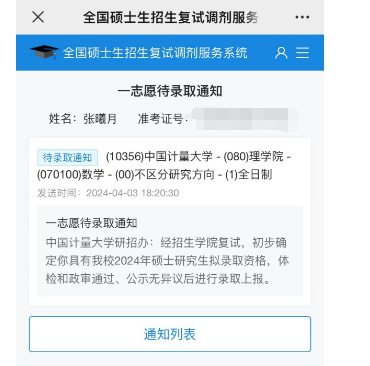 经济与信息学院互联金融专业学生,张曦月,现就读于杭州师范大学经济学专业,于今年考上中国计量大学数学专业硕士研究生。