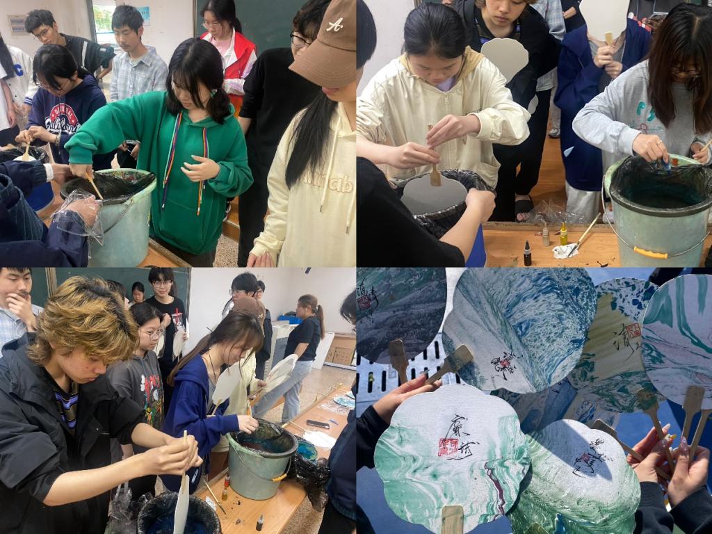 活动现场气氛热烈,同学们通过自己艺术创作能力和动手能力,在绘制图案的过程中,充分发挥自己想象力和创造力,一把把精美的漆扇如艺术品呈现在大家眼前。
