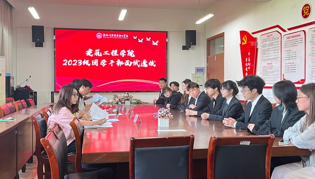 为加强学院共青团、学生会组织建设,给团学队伍注入新鲜血液,吸纳更多优秀同学服务师生,更好促进团学工作发展建设,5月16日,建筑工程学院在钱江楼313会议室举行2023级团学干部面试选拔活动。经过前期预备考察,最终74名同学参加了面试,学院团总支书记肖德彬以及团总支副书记、学生会主席团成员担任了本次面试的评委。