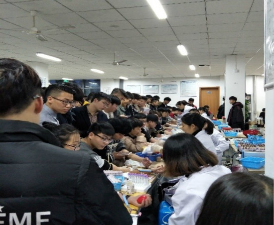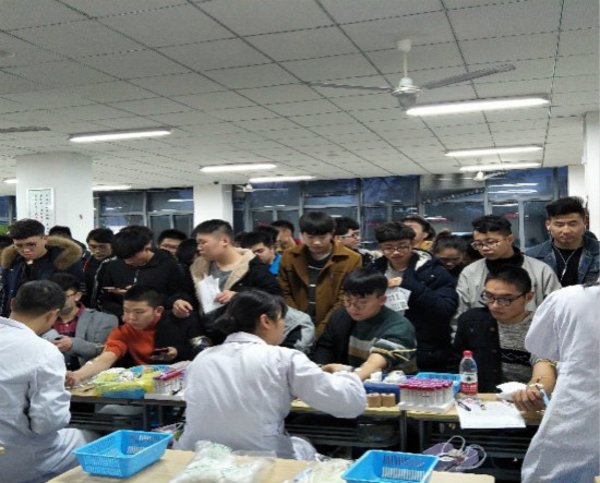 2018年1月3日下午,我院联合浙江省血液中心萧山采血点在学生事务中心开展 “无偿献血与爱同行”2018年无偿献血活动。