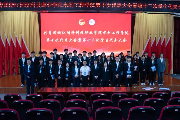 第三项议程,大会经无记名投票差额选举水利学院第十届团总支委员会委员及第十三届学生委员会主席团成员。大会总监票人现场宣读投票结果,大会执行主席梅雪宣布水利工程学院第十届团总支委员会委员、第十三届学生委员会主席团成员名单。