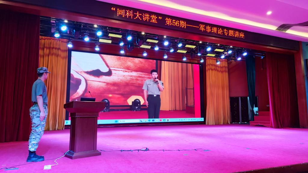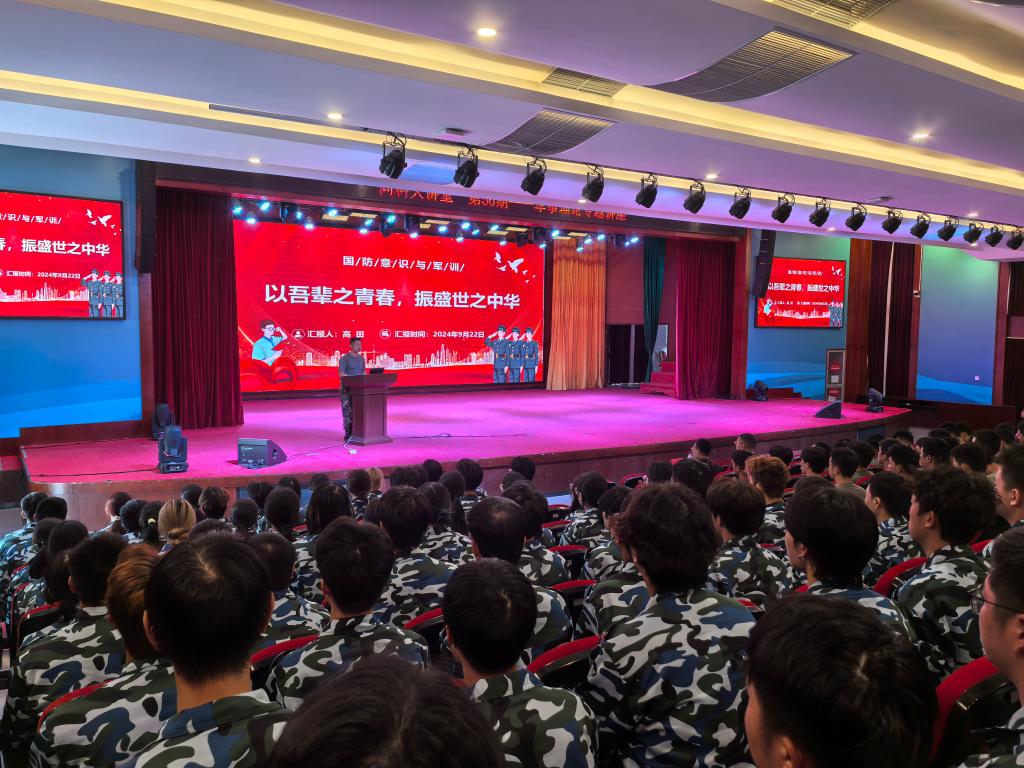 9月22日,通识教育学院在瓯江楼水韵剧场主办了军事理论专题讲座。邀请浙江建设职业技术学院军士教育学院高田教官为主讲人,通识教育学院副院长宋卫军主持讲座,各二级学院教官、学生代表到会。本次讲座以《以吾辈之青春,振盛事之中华》为主题,旨在弘扬爱国主义精神,提高学生综合国防素质。