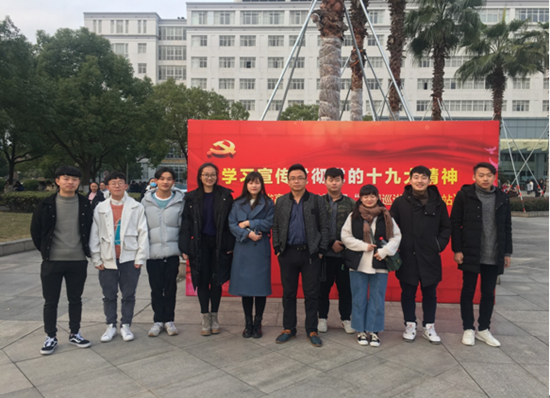 青年兴则国家兴,青年强则国家强。青年一代有本领、有担当,国家就有前途,民族就有希望。本次校园巡讲呼吁广大师生掀起学习热潮,把党的十九大精神学懂、弄通、做实,以习近平新时代中国特色社会主义思想武装头脑、指导实践、凝聚力量,在广阔的时代舞台上,谱写无愧于人生、无愧于时代的乐章!观看结束后,我系师生在宣传板前拍照留恋。