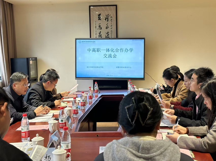 12月4日下午,诸暨市职业教育中心校长刘柏炎一行来我校交流,双方就中高职一体化合作办学事宜展开深入交流与探讨。会议围绕优势专业合作、中高职一体化合作班级运行情况及学生选拔、培养、升学方案、学生体测等议题展开。相关部门(单位)负责人和教师代表参加交流。