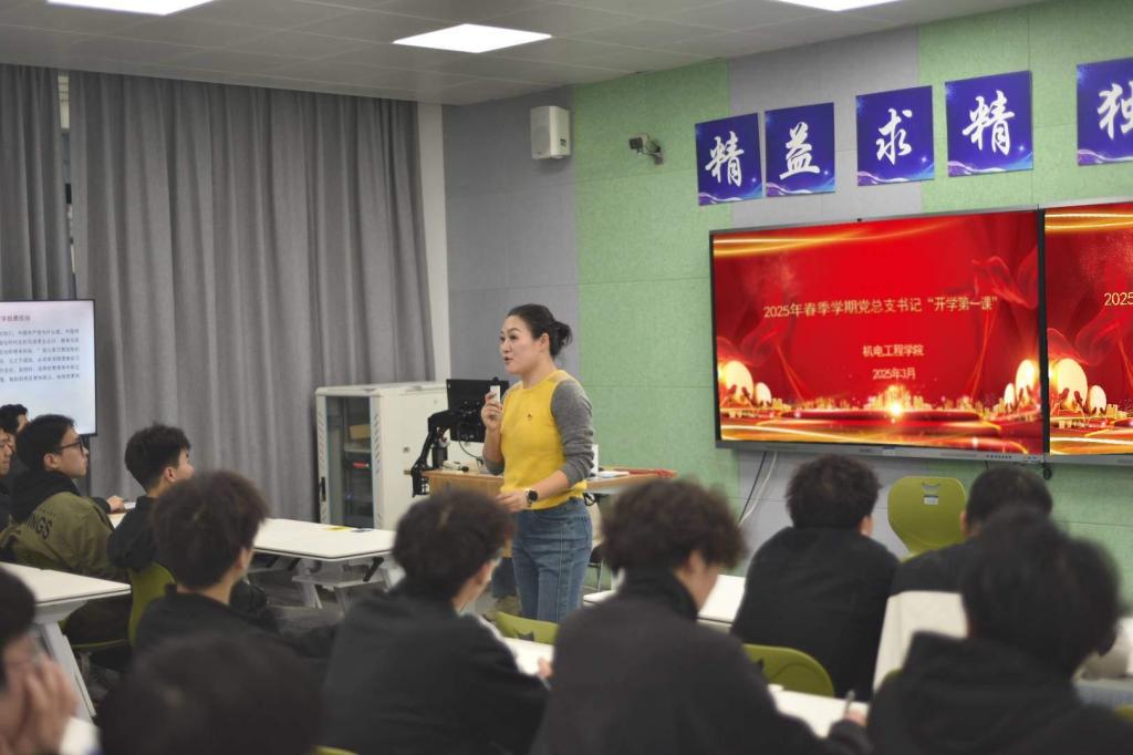 3月12日下午,机电工程学院党总支书记章卉以《擎旗砺行敢为先锋 共赴时代使命同筑奋进新程》为题讲授“开学第一课”,机电工程学院主要团学骨干到场聆听。