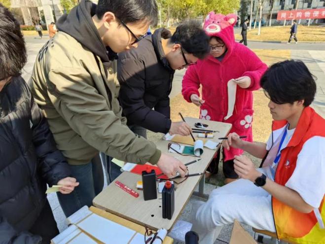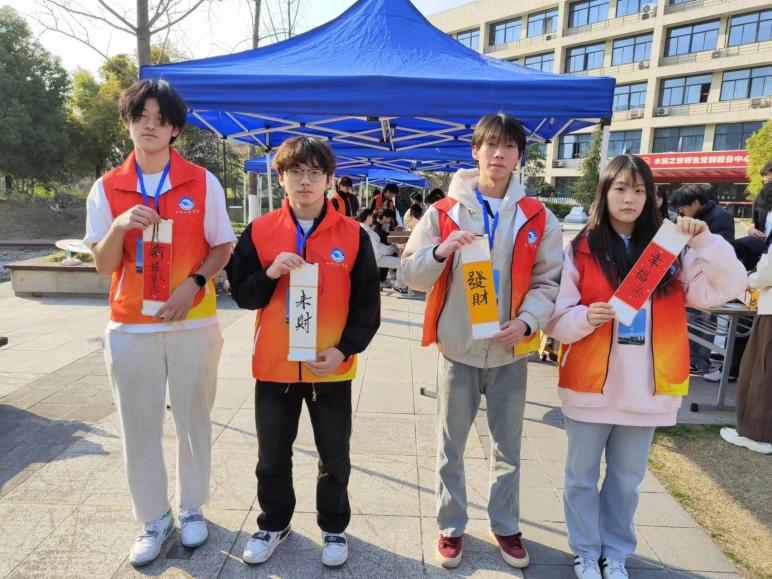 水利工程学院汇声心理站于3月23日在瓯江楼小广场举办“锦绣心迹,翰墨疗愈”春季游园活动,将书法艺术与心理健康教育结合,吸引众多师生参与。