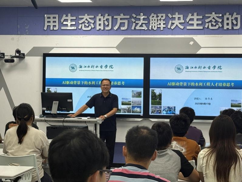 为热烈欢迎首批通过“双高计划”高职院校专升本合作计划进入本科阶段学习的学子,助力其快速融入专业学习、锚定职业发展方向。9月17日,水利工程学院特邀浙江水利水电学院水利工程学院院长徐存东教授,为水工(专升本)班全体学生作题为《AI驱动背景下的水利工程人才培养思考》的专题讲座。本次讲座由水利工程学院院长金斌斌主持,水工(专升本)班全体学生参加。