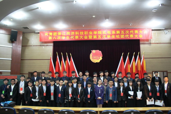 大会听取并审议机电系共青团第五次代表大会、第八次学生代表大会、第五次学生社团代表大会工作报告。介绍了机电系第五届团总支委员会、第八届学生委员会、第五届学生社团委员会委员候选人情况。经过代表们无记名投票方式,最终产生了新一届团总支委员9名,学生会委员13名,社团管理中心委员8名。最后大会在充满了青春激情的《团歌》声中顺利闭幕。