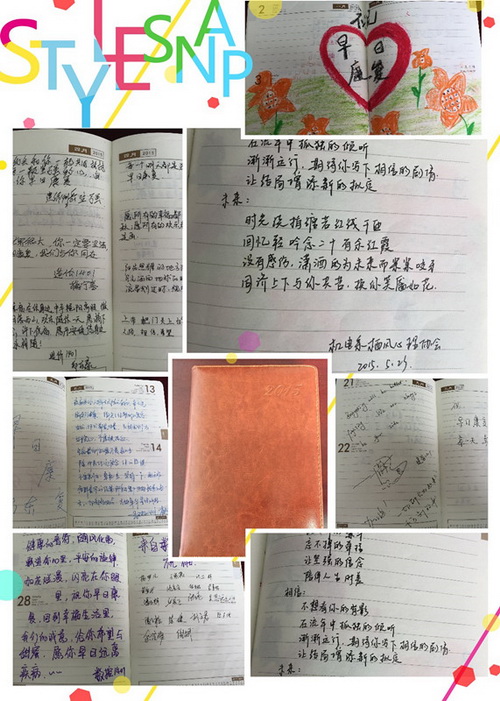 他身边可爱的同学们不仅进行了多次捐款,还在机电系栖风心理协会的号召下,为徐浩剑同学写下了满满的一本祝福语,一本普通的笔记本从此承载了厚厚的分量。“没有伤感,潇洒的为了未来紧紧咬牙,同济上下与你共苦,换你笑靥如花。”声声祝福,送去了大家对徐浩剑同学深深关爱,同时感受到我们同科大家庭的温暖,坚定了他战胜病魔的信心和决心。