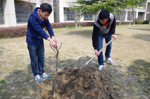 为响应环保植树的号召,进一步增加同学们的环保意识,3月12日植树节中午,建筑系阳光心理站全体成员在校园里开展了植树活动。