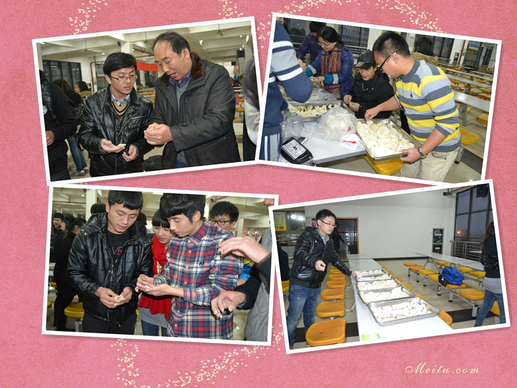 活动现场,老师和同学们大显身手,场面甚是欢快热闹。马景善、张炜老师指导东北水饺的包法,范庆颖老师指导南方水饺的包法,徐玉凤老师指导花边水饺的包法,耿乙廷老师指导小笼的包法,还有同学指导大馄饨的包法,到场的同学不管会与不会,个个伸出双手,用心地学习与切磋,哈哈,千姿百态的饺子出场了,有三角形、有月牙形、有兔形、有小笼包……在二楼食堂大厨和工作人员的帮助下,一锅锅热气腾腾的水饺隆重登场了,好吃、味道不错,食堂里到处洋溢着同学与老师们的赞叹声、笑语声,整个餐厅温暖四溢,其乐融融。