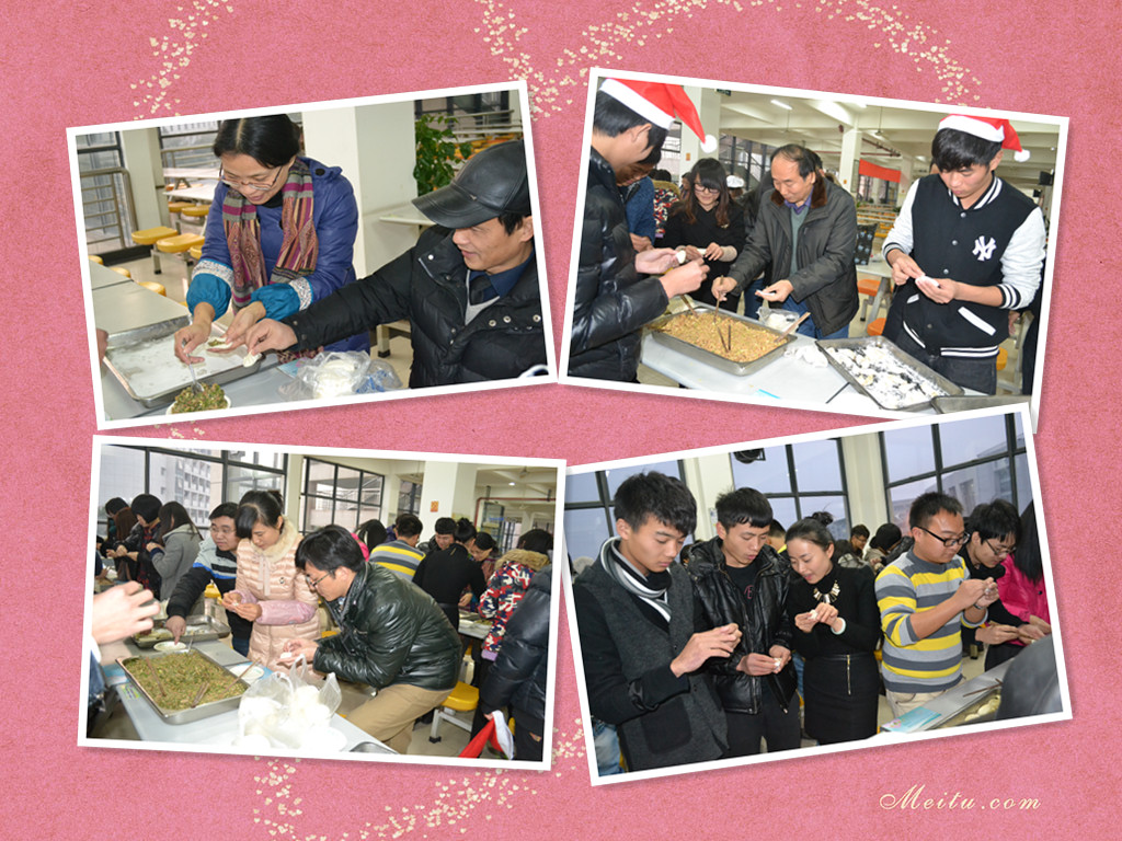 一年一度的圣诞节如期而至,如何不铺张浪费而又愉快地度过这美好的佳节,建筑系的学子们通过短信、QQ形式给父母、给朋友、给老师送去了“平安夜幸福、圣诞快乐”等祝福,以主题班会形式开展了欢度活动,更有意义的是在学院二楼餐厅开展了一场热闹而又温馨的师生包水饺活动。