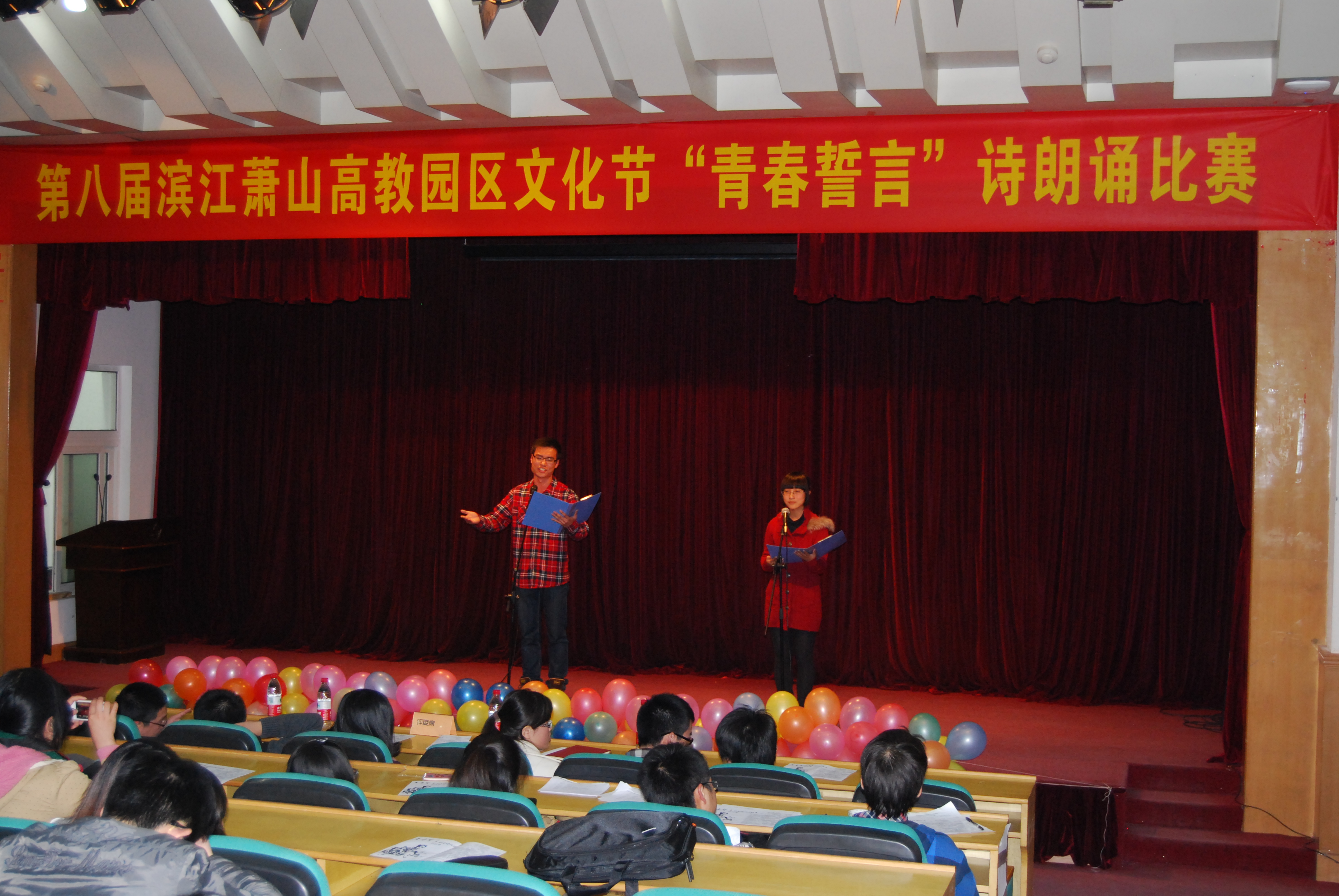 11月15日晚,由博雅校园文化传媒中心承办的“砥砺青春、立志成才”第八届浙江滨江萧山高教园区文化节之“青春誓言”配乐诗朗诵比赛在浙江中医药大学图书馆报告厅举行。我院代表队由信息系辅导员老师谢芳带领,在此次比赛中获得优胜奖。