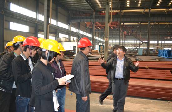 为了尽快让学生对所学专业有一个感性认知,缩短课堂到企业的距离,11月16日,建筑系组织2011级建筑工程技术专业钢结构方向学生到浙江大地钢结构有限公司钢结构生产车间现场参观学习。