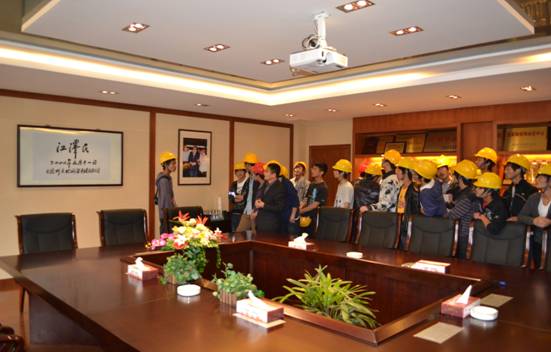 到达企业后,受到了公司领导热情接待。总裁助理赵演松向同学们介绍了公司发展情况,并带领大家参观了公司荣誉室,了解了公司有百余项工程分别获得中国建筑鲁班奖、中国钢结构金奖、詹天佑土木工程大奖和省、市级钱江杯、白玉兰杯、金钢奖等。特别了解到江泽民总书记等党和国家领导人都曾到大地公司视察。同学们非常兴奋,对钢结构专业的发展充满希望。