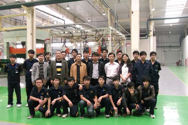 10月20日上午,机电系主任富丹华,辅导员黄斌、方昉及相关班主任一行5人,在海宁莲花乘用车有限公司综合办主任徐圣贤的陪同下,赴萧山生产基地看望了2009级汽车制造与装配专业20名顶岗实习学生。