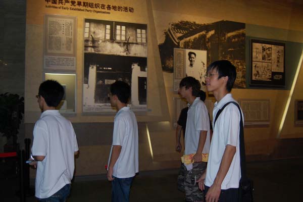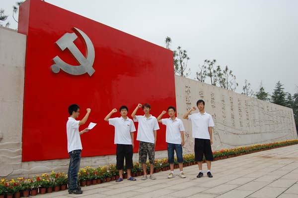 此外,队员们还参加了“红船颂”庆祝建党九十周年全国书法绘画作品展,感受到了红色艺术的熏陶。同时实践队伍中的部分党员同志,还在红船雕像的巨大党旗下重温了入党宣誓仪式,在这片红色土地上留下了永恒的回忆。