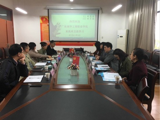 11月12日下午,广东南华工商职业学院建筑与艺术设计学院院长陈伟星及党总支副书记胡娟等一行六人来我院交流研讨。建筑工程系副主任杨海平、艺术设计系副主任洪梅及相关人员热情接待了来访的客人。