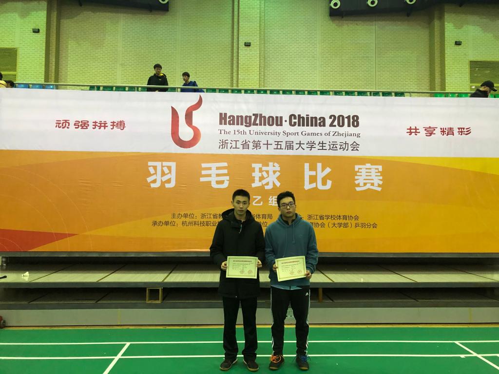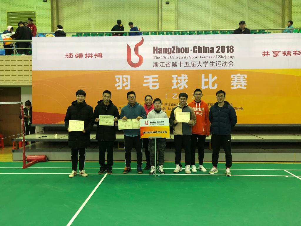 近日,浙江省第十五届大学生运动会羽毛球、篮球、健美操、武术比赛落下帷幕。我院代表队在领队基础部主任吕兴虎,总教练章永健,教练顾红伟、陈正强、宋卫军、陈巧燕、冯杰荣老师的悉心指导下,与来自全省各高校的代表队展开激烈角逐。最终勇夺羽毛球男子双打第一名、男子单打第二名,健美操比赛获得1金2银,武术比赛获得南拳第六名。陈正强与陈巧燕两位老师被评为优秀教练员。