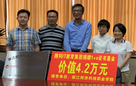 景秀眉代表学院对腾科IT教育集团一行表示热烈欢迎,杨迎总裁介绍了腾科与学院合作方式与捐赠内容,此次腾科IT教育集团将为信息安全与管理专业学生开展HCIA(华为认证云计算工程师)免费培训,并捐赠价值4.2万元的考试券30张,助力学生获得证书。随后,双方签署了捐赠协议,并授予“双证融通”人才培养基地铜牌。