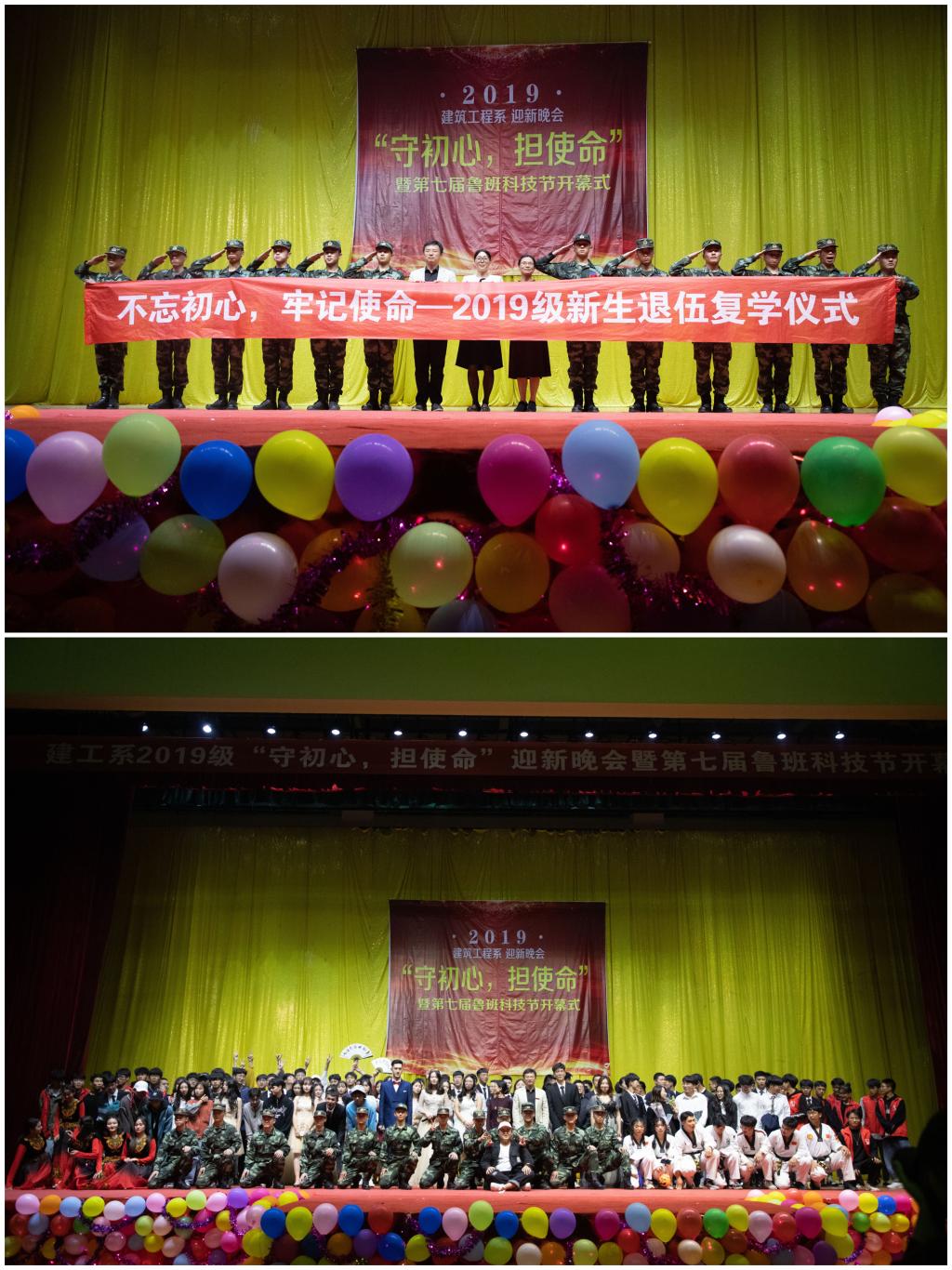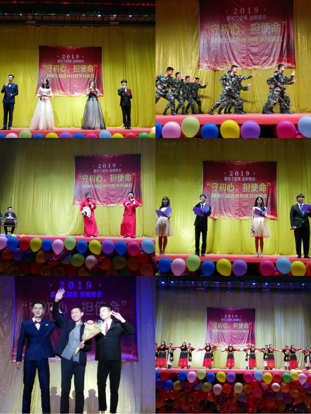 在庆祝新中国成立70周年、喜迎同科60周年校庆之际,建工系2019“守初心,担使命”迎新晚会暨第七届鲁班科技节开幕式于11月1日晚在文体中心体育馆隆重举行。学院党委委员、纪委书记应芬,系领导班子、各专业部主任、辅导员、19级全体班主任、班助以及2019级新生参加晚会。受邀参加晚会的还有学生处李君老师、各系负责团学老师和学生代表。