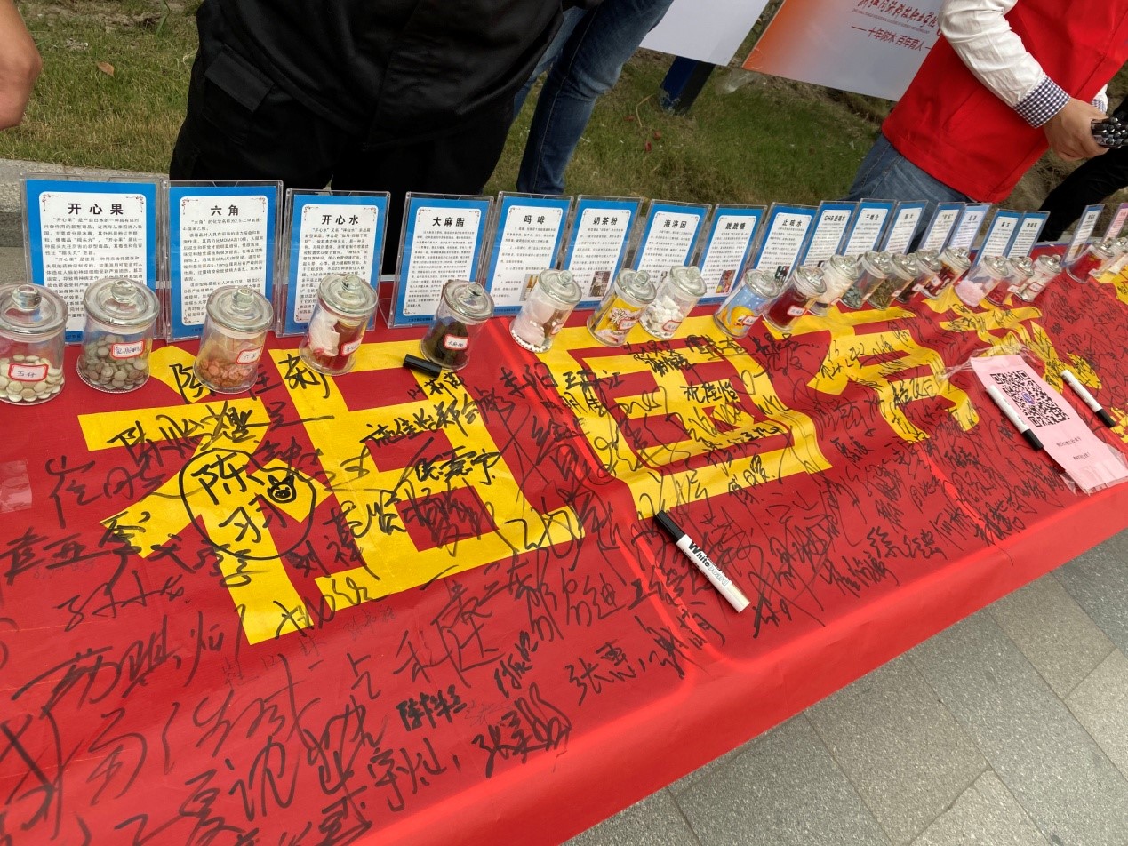 最后,为了加深大家对禁毒知识的理解,活动现场还设置了禁毒知识有奖竞答互动环节,吸引了大量师生驻足了解禁毒知识,积极参与,并表示会提高对毒品的防备心,珍爱生命,远离毒品,纷纷在横幅上签名承诺以实际行动积极参与到禁毒行动中,为校园深入开展禁毒工作奠定了群众基础。