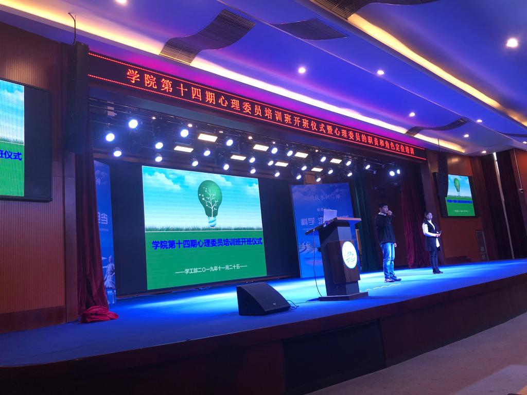 为进一步加强我院大学生心理健康教育工作,建设一支具有较高水平的朋辈心理辅导队伍,11月25日中午,学院第14期心理委员培训班在瓯江楼小剧场举行开班仪式。学工部副部长叶乐、心理中心专兼职教师及全院2019级心理委员、学院朋辈心理辅导站全体成员200余人参加了此次开班仪式。仪式由心理中心商冬梅主持。