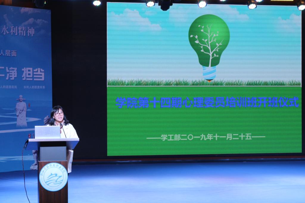 会上,学工部副部长叶乐致辞。她指出,心理健康教育工作是学校立德树人工程的重要方面,心理委员、朋辈心理辅导员是学院心理健康教育队伍的重要力量,心理骨干要以此次培训为契机,结合工作实际不断实践,努力增长才干,充分发挥桥梁作用,为我院学生工作和构建和谐校园做出积极贡献。
