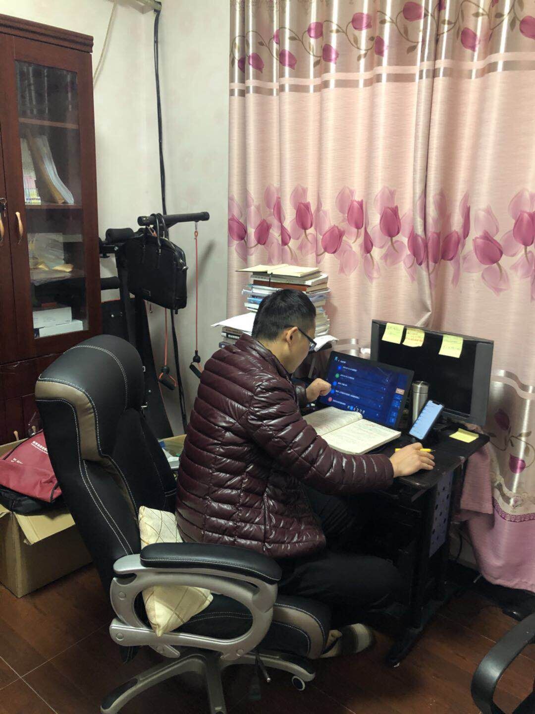 李维俊老师,机电专业专任教师,民主党派,70后。来自企业一线的新老师,面对疫情的突发情况,首次接触网络直播教学。为了更好更生动的将企业典型案例用网络直播的形式呈现出来,大部分时间在书房备课。