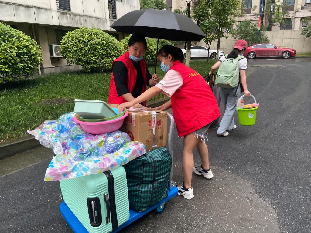 “你们的伞有点小,我们换一把吧,行李湿了没事,你们别淋湿了。”“没事的学姐,能帮到你们,我们很开心。”一句句简单的对话,一幕幕温情的场景出现在同科的校园里。因为疫情的特殊原因,外来车辆不能进入校园,毕业生们只能自行将行李搬至校门口,为此工管系会计1901班的志愿者们自发组织暖心送别毕业生活动,通过线上线下预约的方式,为毕业生提供服务。